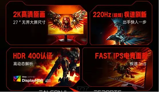 HKC G27H2Max 采用 2560×1440 分辨率 Fast-IPS 面板,刷新率 220Hz,1ms GTG 响应,对比度 1000:1,HDR 模式下峰值 400 尼特,通过 HDR400 认证,画面锐度与层次感全面跃升。