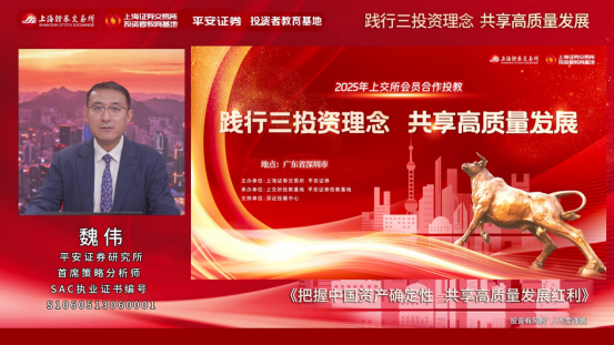 11月18日下午4点,上海证券交易所与平安证券联合组织“践行三投资理念,共享高质量发展”系列投教直播活动。平安证券研究所副所长、首席策略分析师魏伟围绕“把握中国资产确定性,共享高质量发展红利”这一主题,从全球宏观环境、中国产业趋势、资本市场改革以及资产配置策略等多个维度展开深度解读,为投资者厘清脉络、指明方向,带来一场兼具洞察力与实操价值的市场展望!
