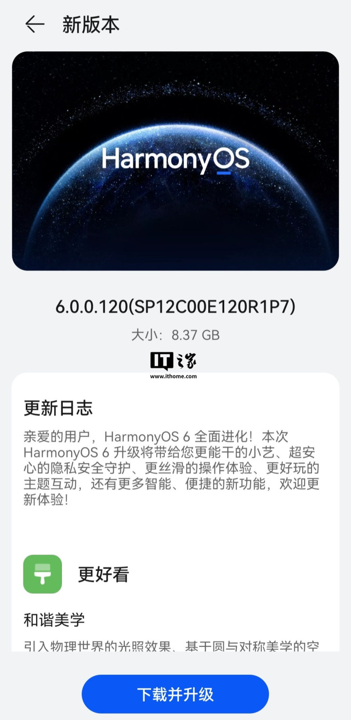 IT之家注意到,华为畅享70X手机已开启HarmonyOS6.0.0.120(SP12C00E120R1P7)开发者版本推送,系统包大小约8.37GB。据介绍,HarmonyOS6全面进化,将带来更能干的小艺、更强的隐私安全守护、更丝滑的操作体验、更好玩的主题互动等。