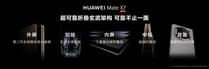 为了支撑轻薄机身,华为MateX7引入了超可靠折叠玄武架构,将机身从内到外实现革命性突破,拉高可靠性标准。