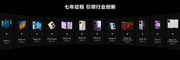 回顾华为折叠屏的进化史,从2019年华为MateX首创鹰翼式折叠结构,到华为MateX2独创双旋水滴铰链,实现无缝内折,到华为MateX3与华为MateX5在轻薄与可靠性方面的全面进阶,以及如今MateX7的玄武架构与红枫影像,华为始终在做那个难而正确的选择。